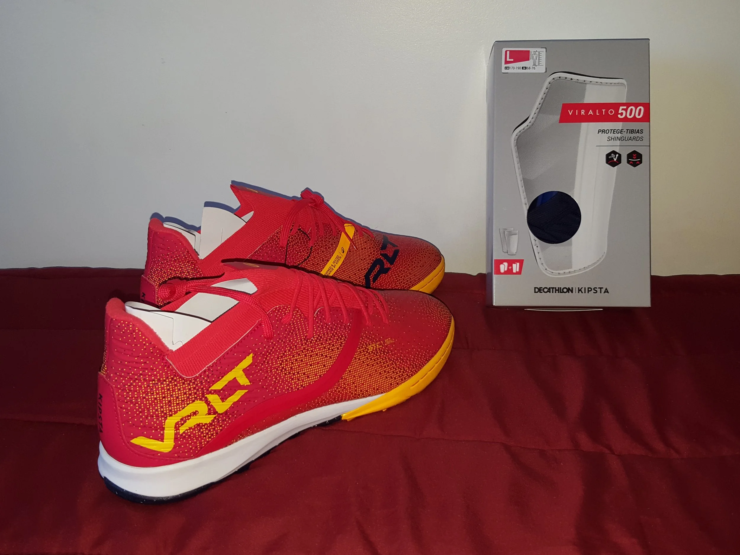 I purchased the Viralto 3 by Kipsta (a brand by Decathlon) soccer cleats (for synthetic grass, since that’s what most of my training leading up to the tryouts will be conducted on) along with the Viralto 500 shinguards. The shoes have high-end features, yet are very affordable relative to those of other companies… plus, they’re aesthetically stunning, in my opinion. As a side-note, though, unless you’re trying them out in-store, I’d recommend going with a full size bigger than what you’re used to; most of the complaints within their online reviews seem to indirectly (or directly) point this out. Doing so, therefore, should enable them to fit like a glove, as they say.
